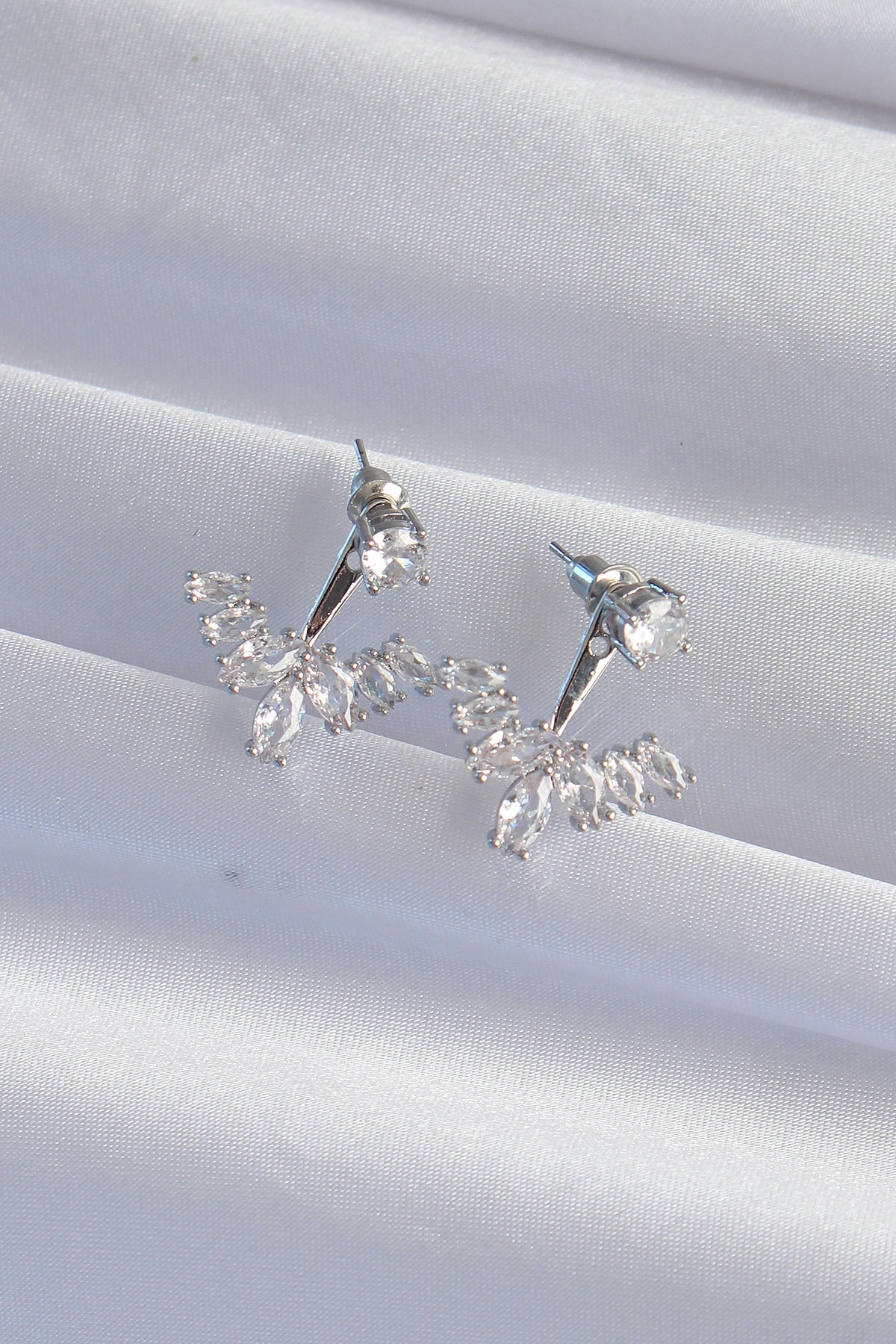 Pirinç Gümüş Renk Zirkon Taşlı V Model Küpe
