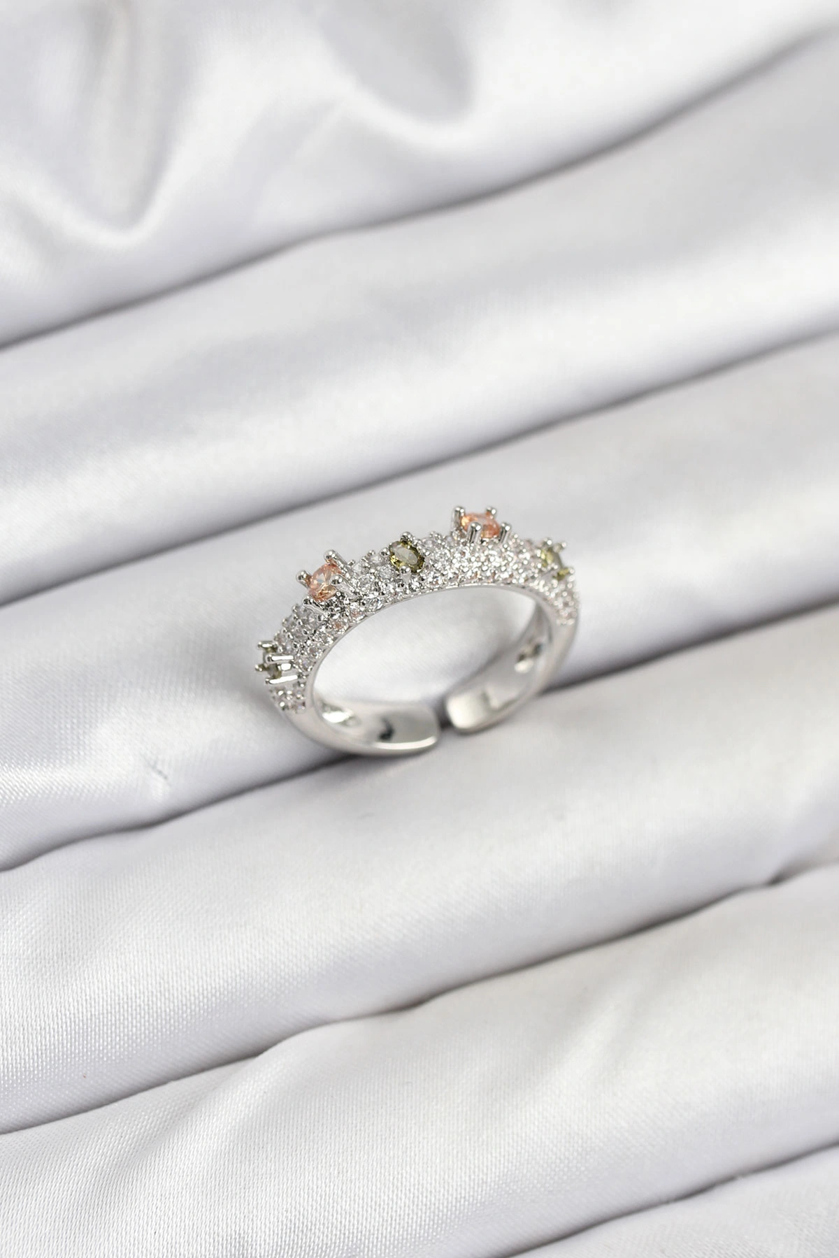 Pirinç Gümüş Renk Zirkon Taşlı Vintage Kadın Yüzük