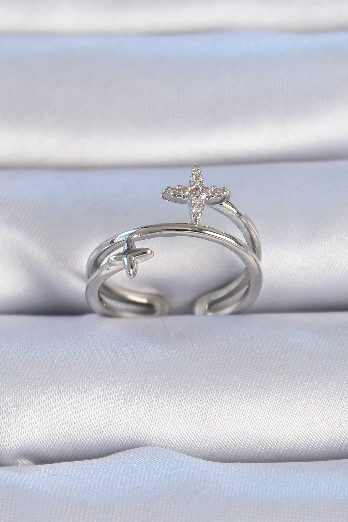 Pirinç Gümüş Renk Zirkon Taşlı Yıldız Model Kadın Yüzük