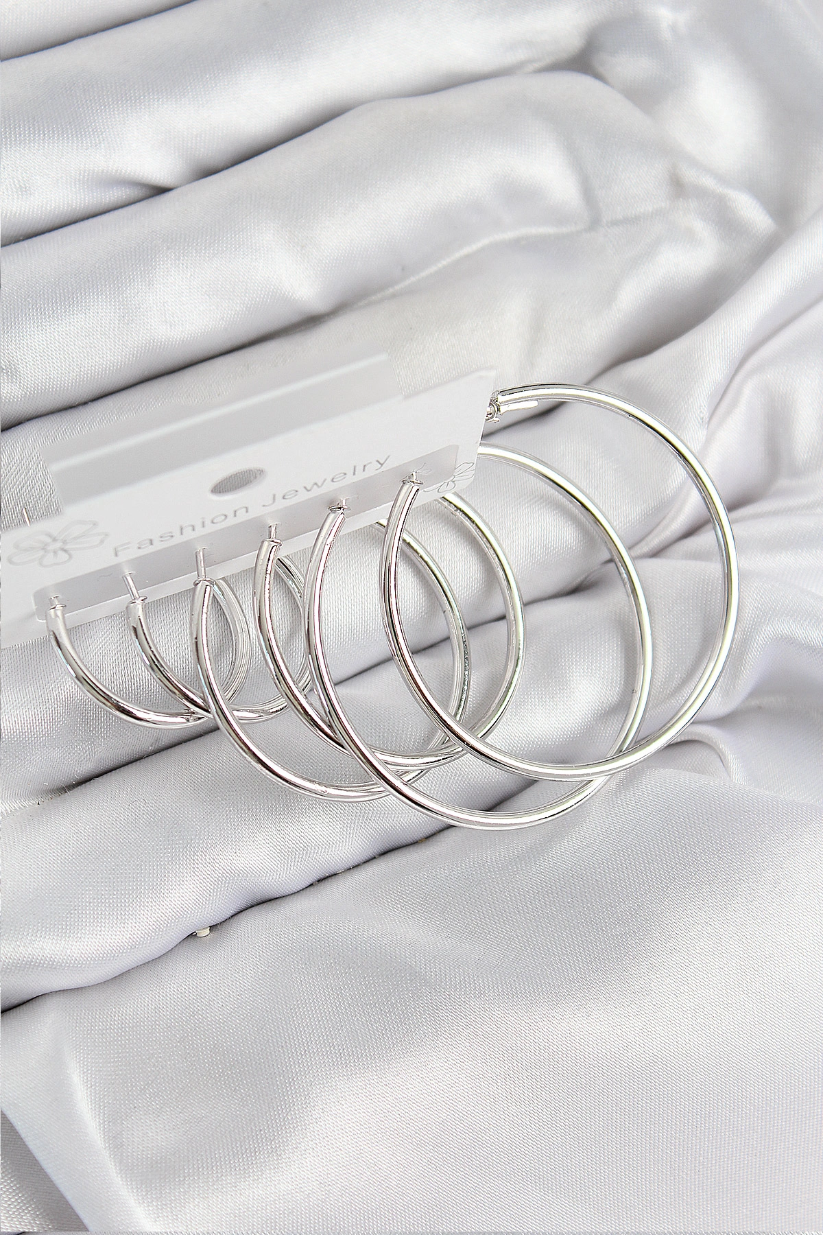 Pirinç Halka Model Gümüş Renk Kadın Set Küpe