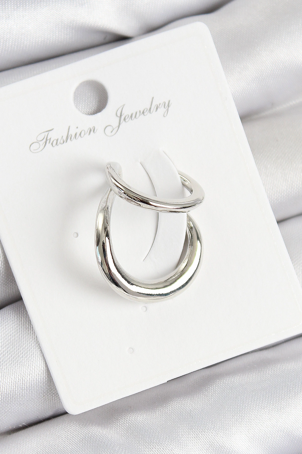 Pirinç Halka Model Gümüş Renk Sağ Kıkırdak Küpe
