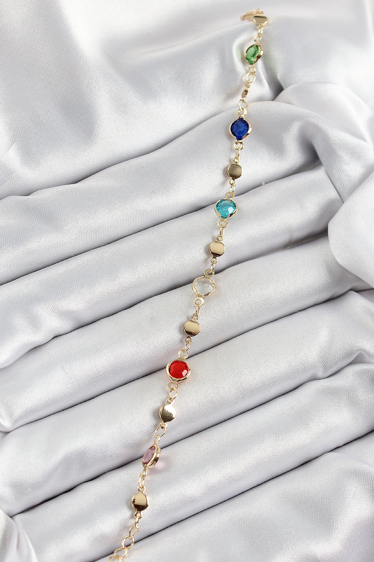 Pirinç Karışık Renk Zirkon Taşlı Gold Renk Kadın Bileklik