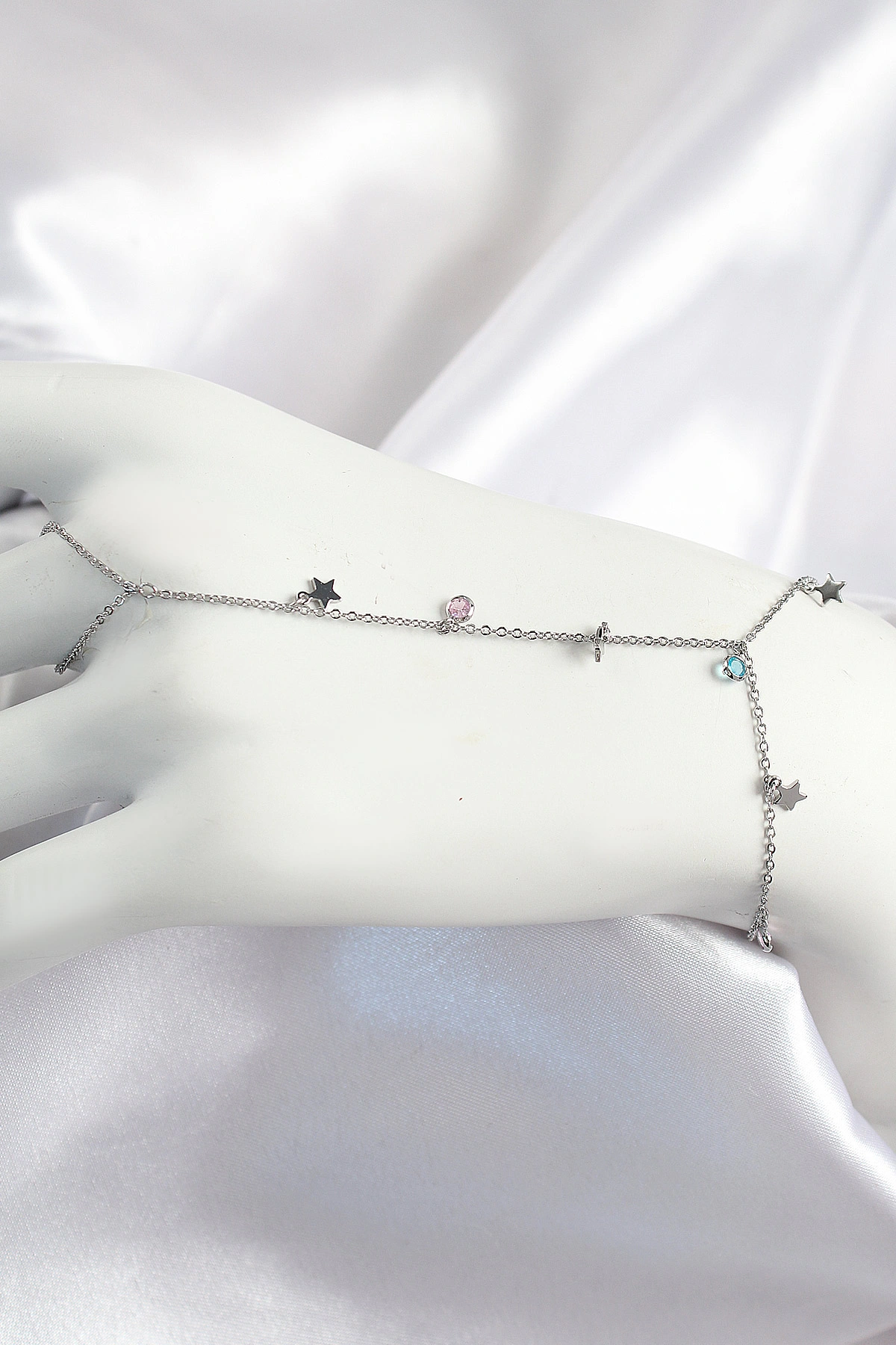 Pirinç Renkli Zirkon Taşlı Sallantılı Yıldızlı Model Gümüş Renk Kadın Şahmeran