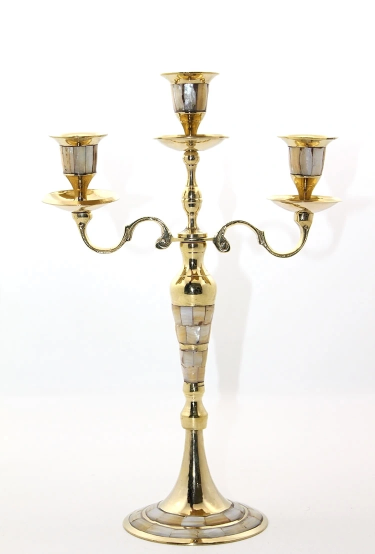 Pirinç Ve Sedef Karışımdan Üretilmiştir. Pirinç Sedefli 3'Lü Şamdan 35*23 Cm.