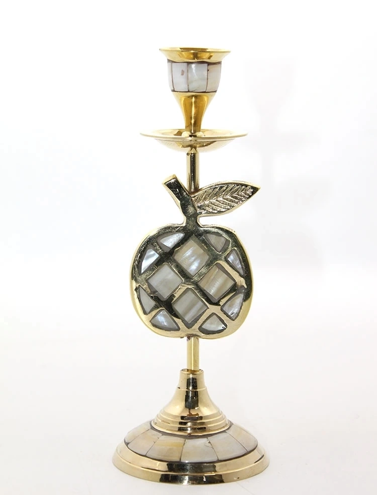 Pirinç Ve Sedef Karışımdan Üretilmiştir. Pirinç Sedefli Tekli Şamdan 20 Cm.