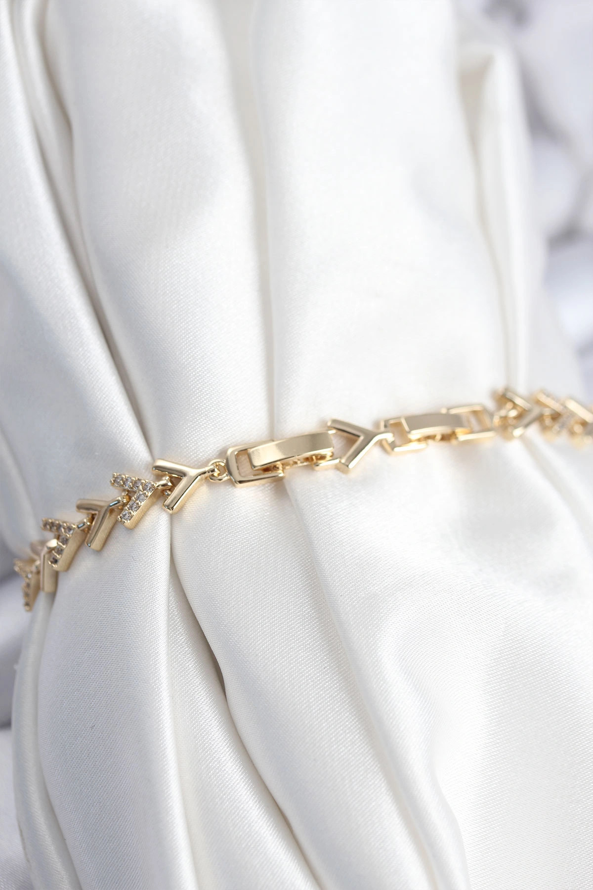 Pirinç VIP Seri Gold Zirkon Taşlı Balık Sırtı Model Kadın Bileklik