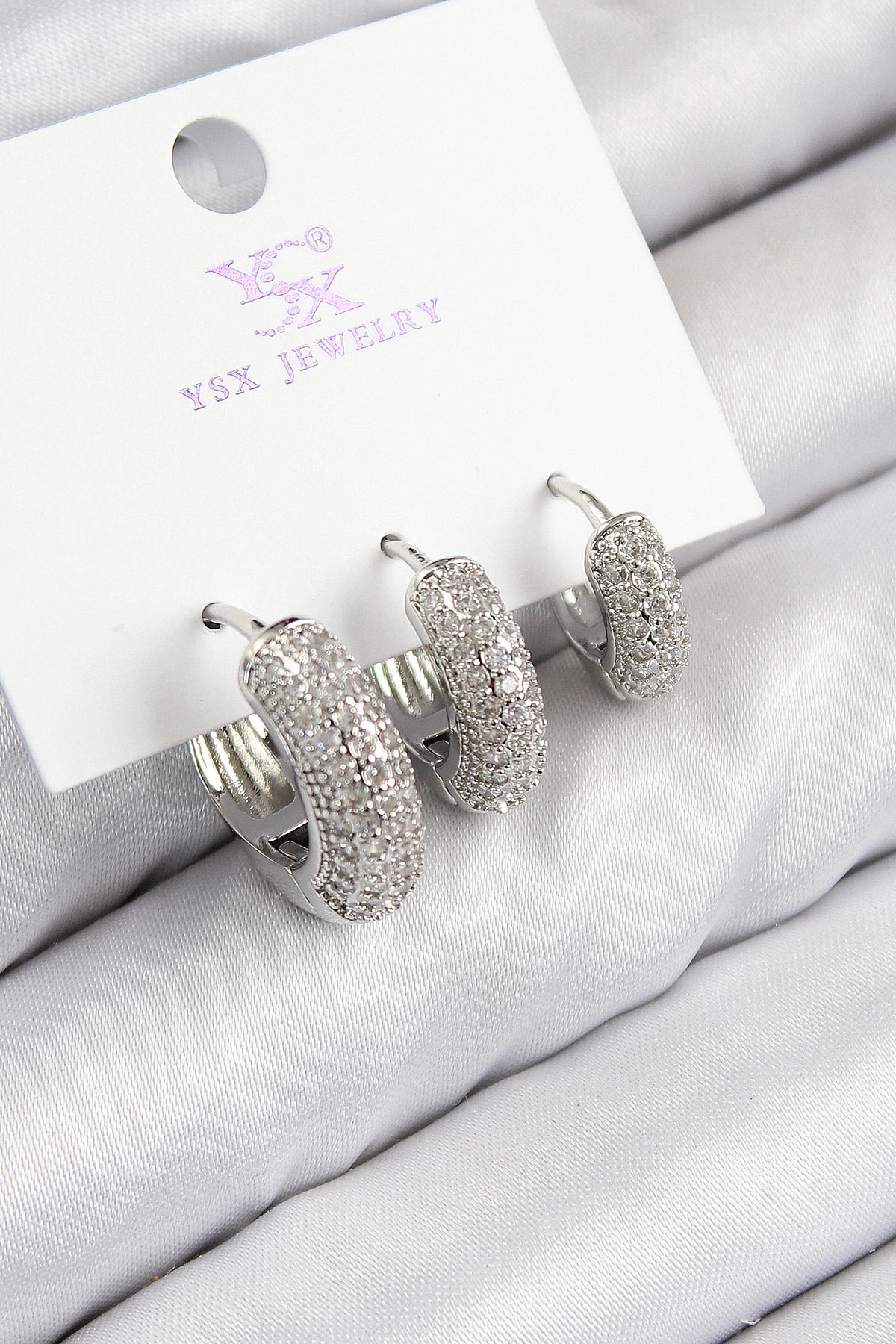 Pirinç Zirkon Taşlı 3'lü Halka Model Gümüş Renk Kadın Küpe