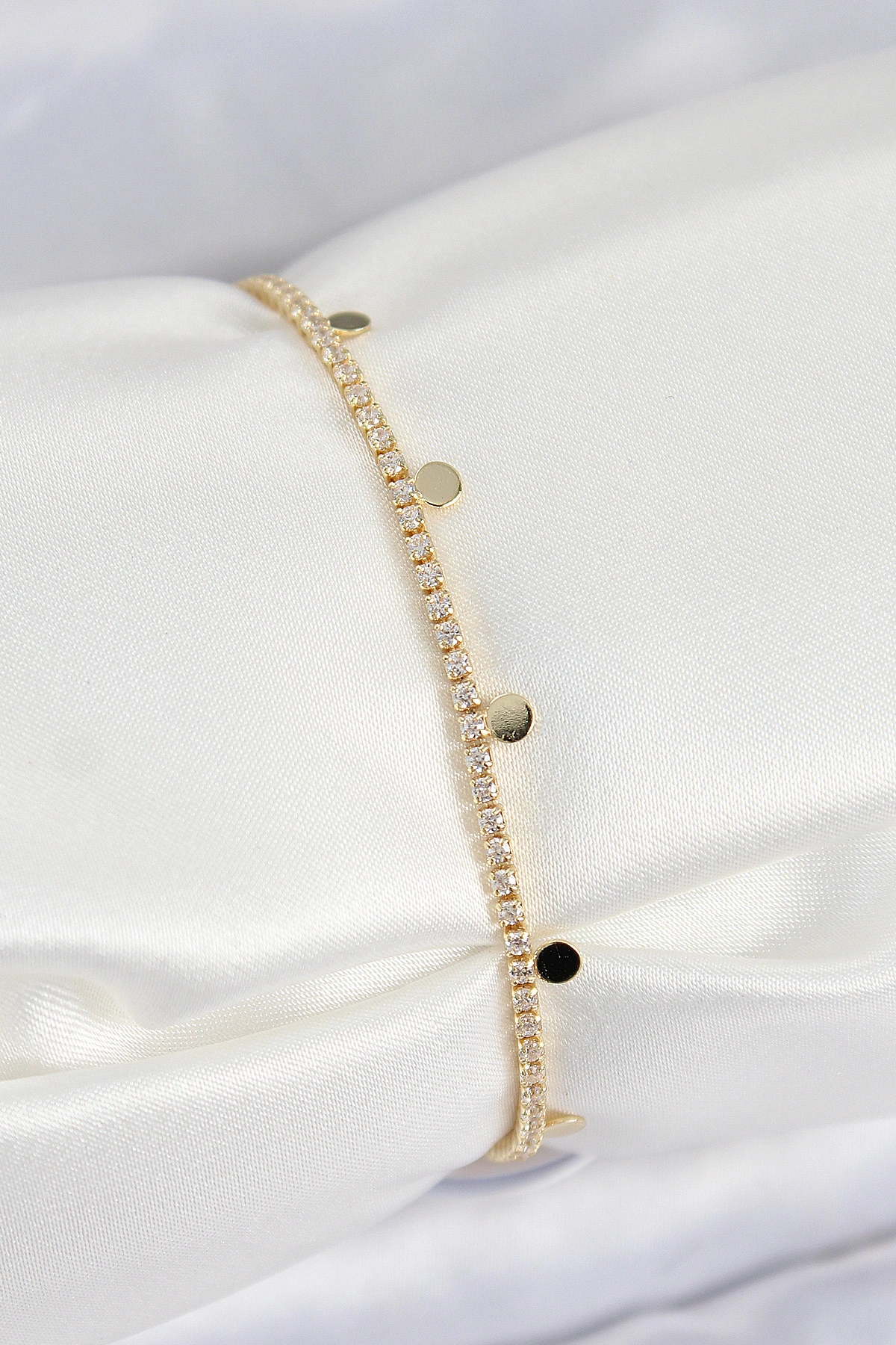 Pirinç Zirkon Taşlı Ezme Zincirli Sıralı Model Gold Renk Kadın Bilekilk