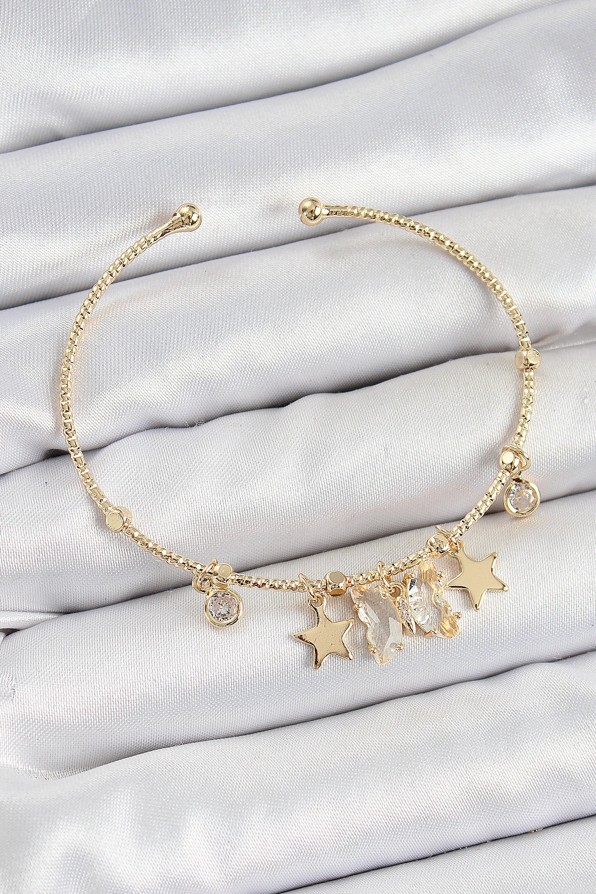 Pirinç Zirkon Taşlı Kelebek Ve Yıldız Model Gold Renk Charm Bileklik