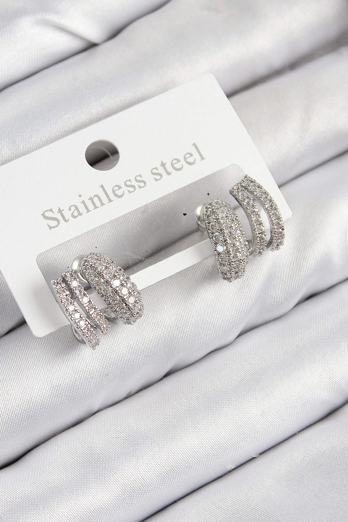 Pirinç Zirkon Taşlı Kıvrımlı Model Gümüş Renk Kadın Küpe