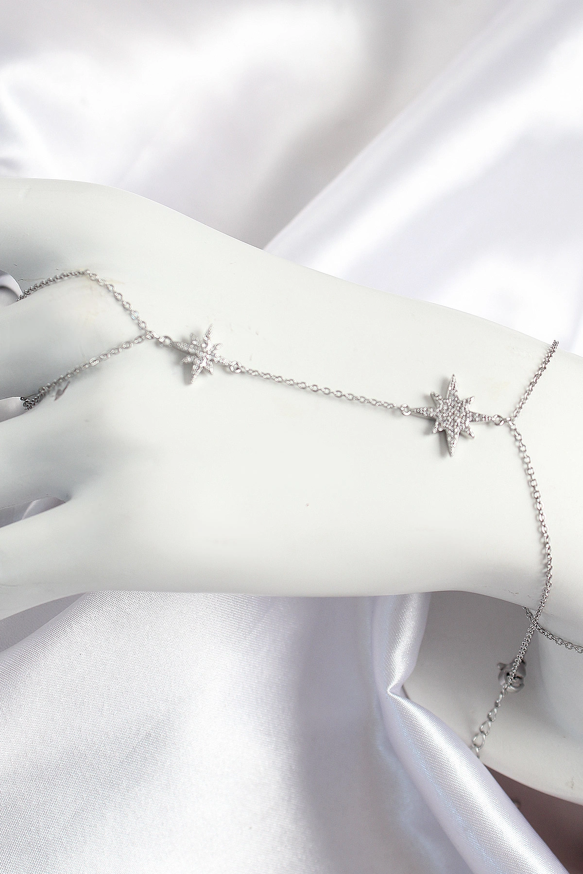 Pirinç Zirkon Taşlı Kutup Yıldızı Model Gümüş Renk Kadın Şahmeran
