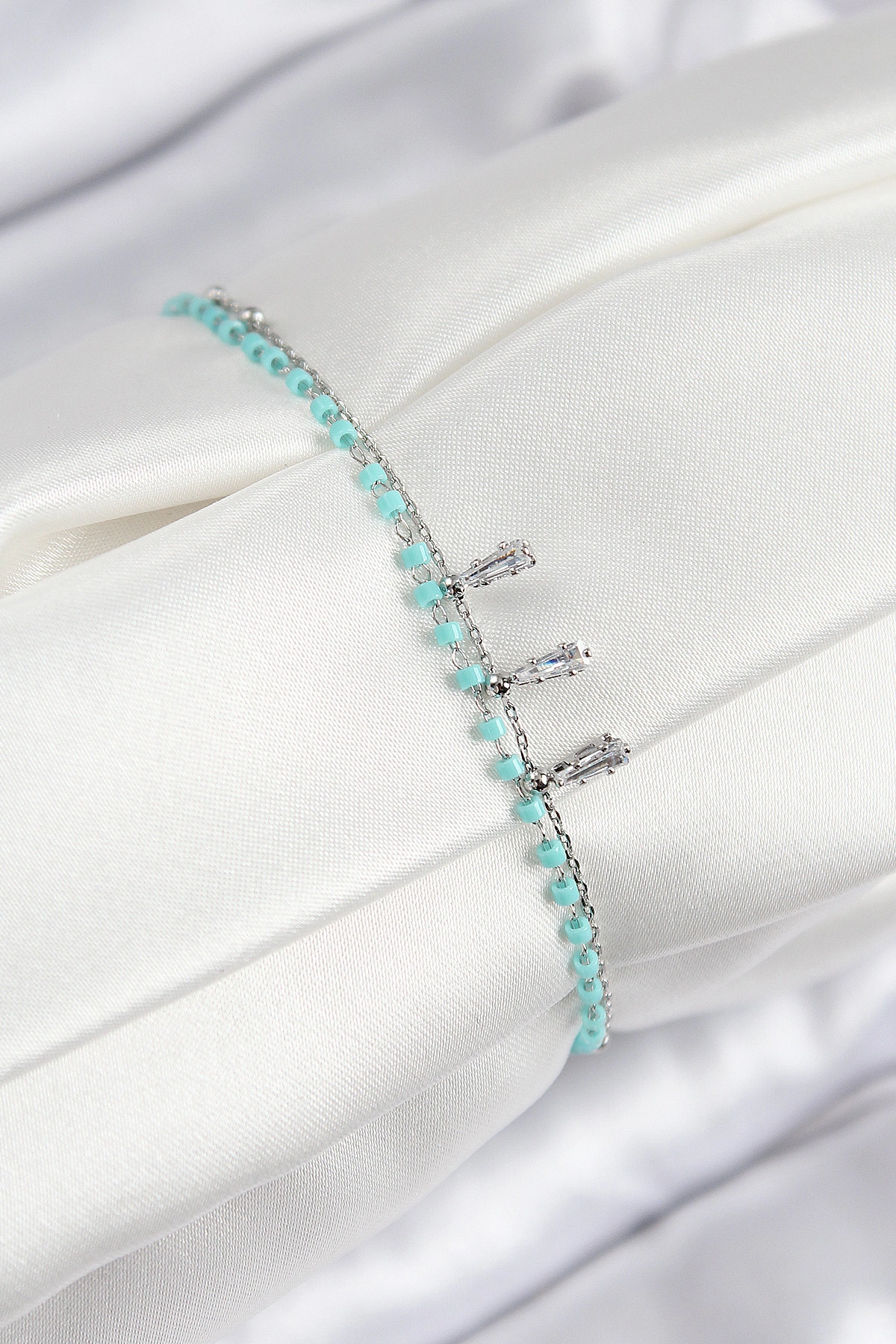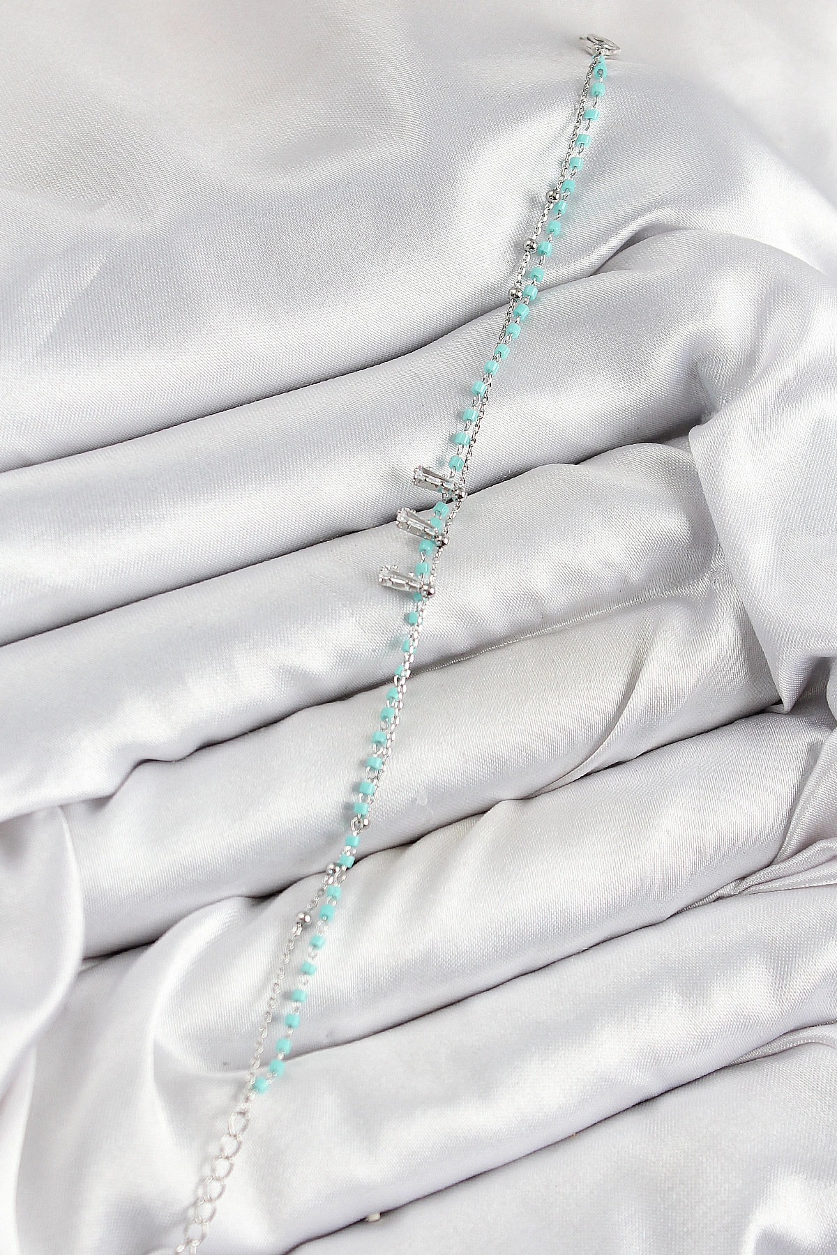 Pirinç Zirkon Taşlı Mavi Boncuklu Model Gümüş Renk Kadın Bileklik
