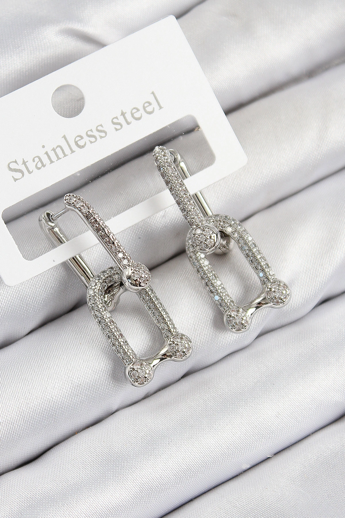 Pirinç Zirkon Taşlı Tifany Model Gümüş Renk Kadın Küpe