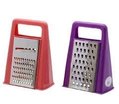 PİRAMİT METAL MUTFAK RENDESİ ÇİFT YÖNLÜ RENKLİ PLASTİK ÜSTTEN TUTMALI (4940)