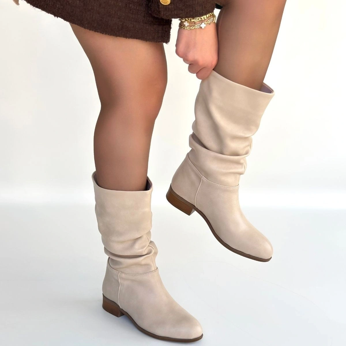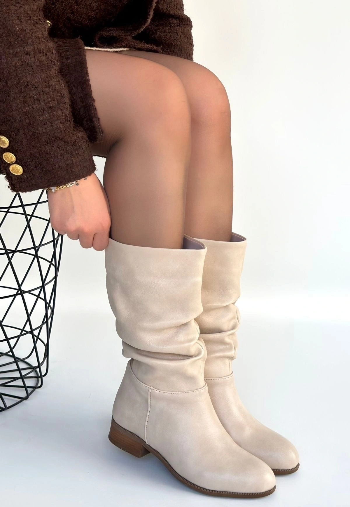 Plod Bej Cilt Körüklü Çizme