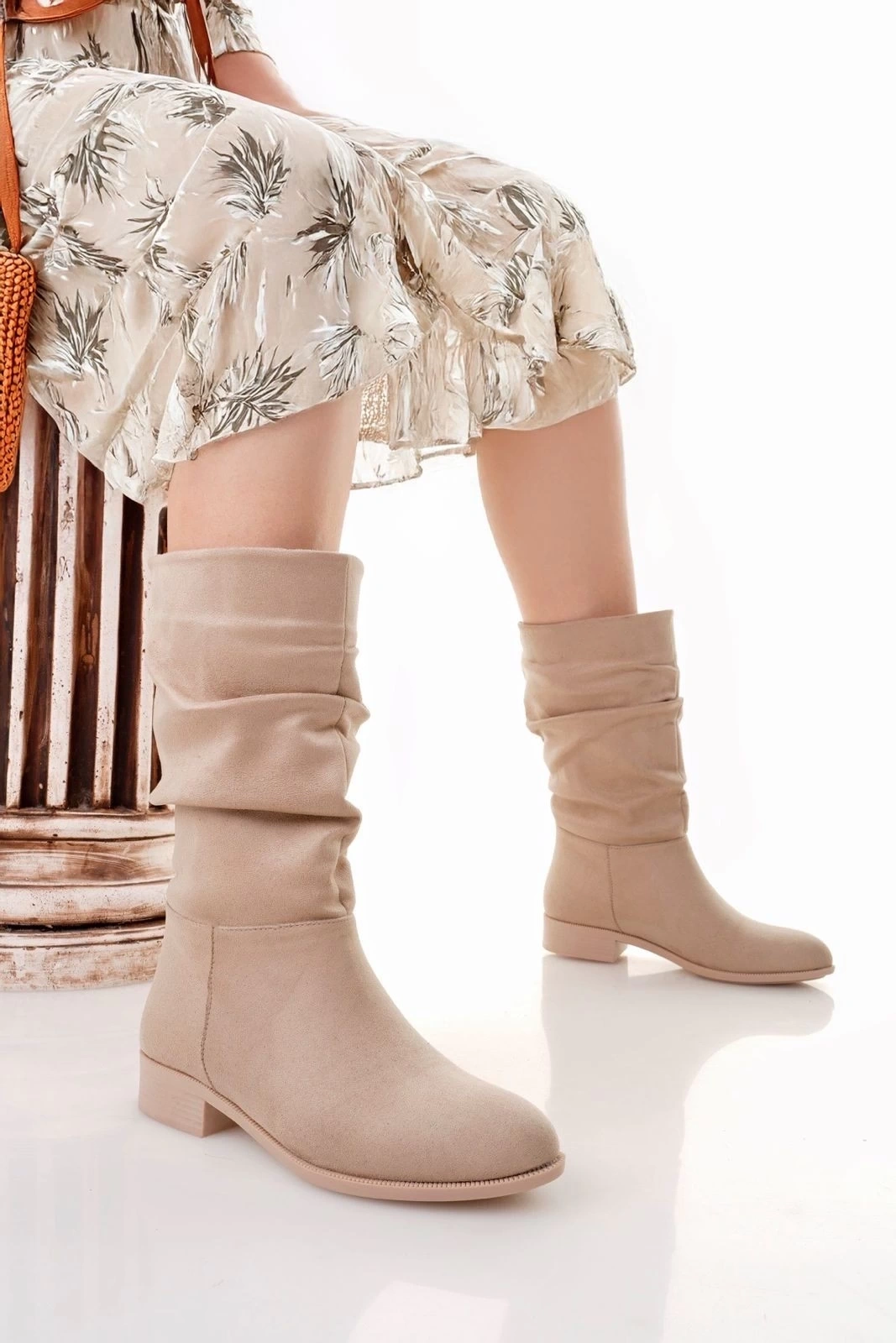 Detay: Topuklu Diz Altı Körüklü Çizme