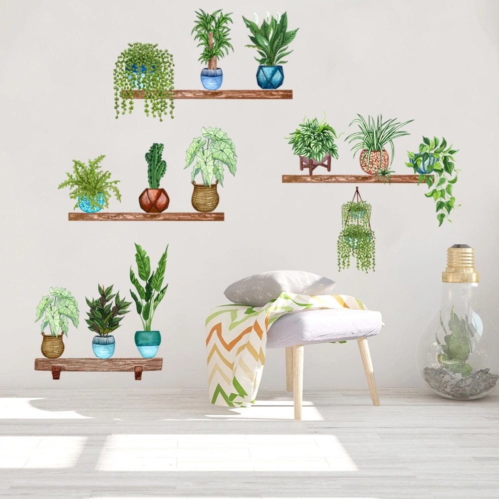 Raflı Saksılı Çiçek Tasarımlı Yapışkanlı Sticker (4940)
