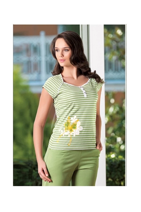 Şahinler Kadın Çizgili Patlı Kaprili Pijama 21173