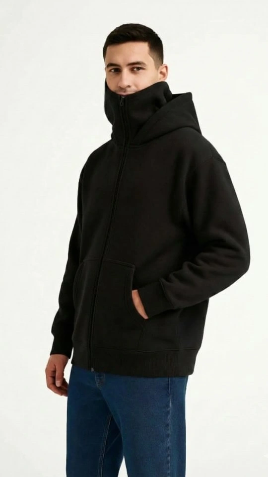 Erkek Polar Fermuarlı Sweatshirt – Kapüşonsuz, Cepli, Yumuşak Dokulu, Oversize Rahat Kalıp, Kışlık Sıcak Tutan Fermuarlı Üst - Siyah