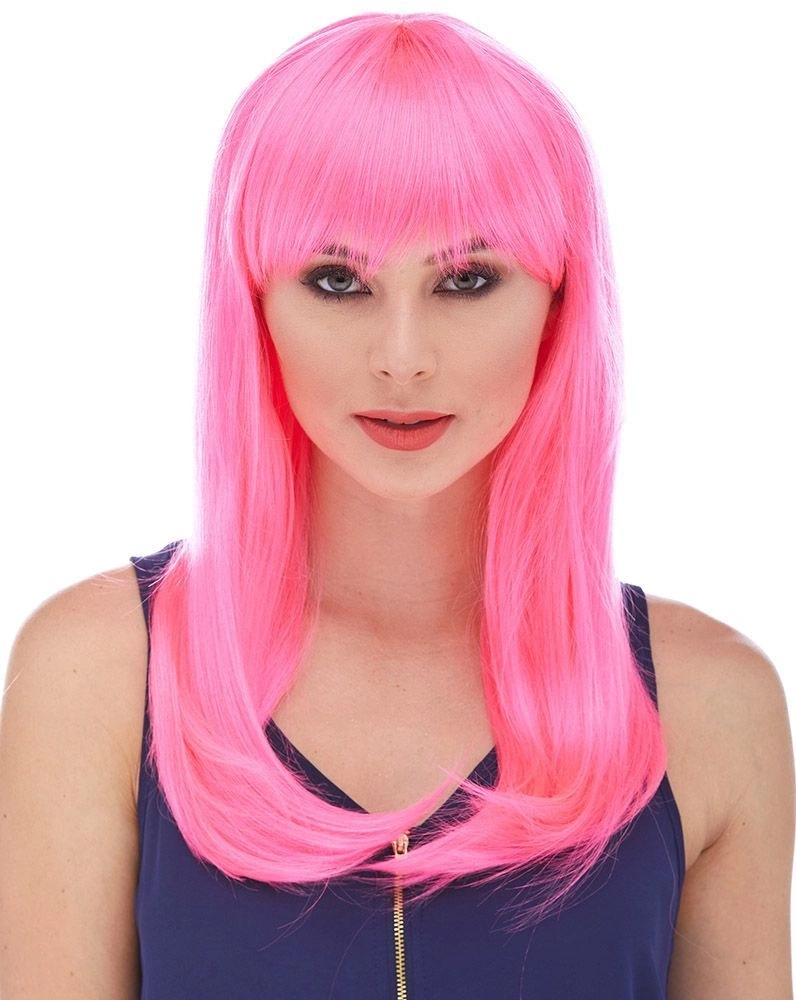 Şeker Pembesi Koyu Pembe Renk Uzun Düz Parti Peruğu (4940)