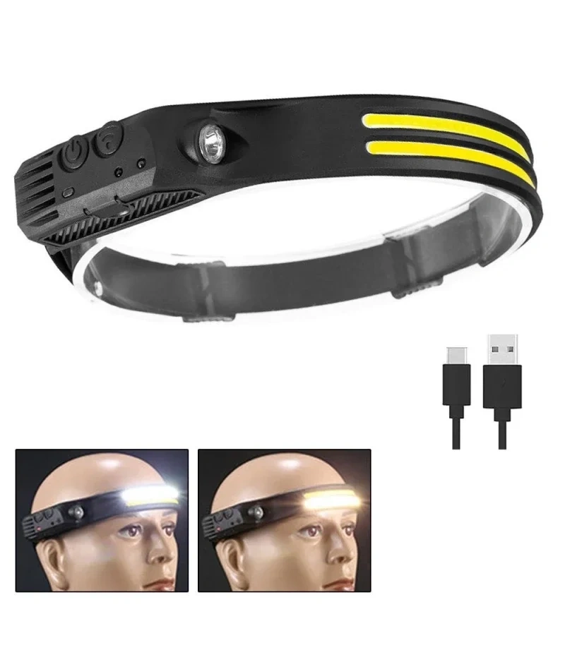 Sensörlü Far COB Led Far Şarj Edilebilir Kafa Feneri 18650 Dahili Pil Açık Hava Balıkçılık Kamp Baş Feneri Fener (4940)