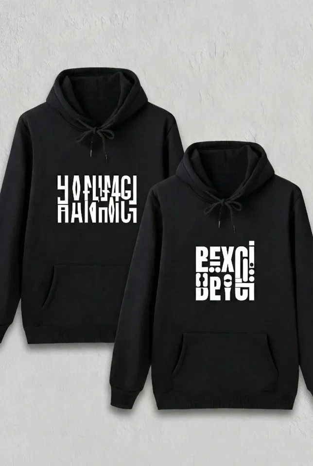 Sevgililer Günü Özel Kapüşonlu Beyci Baskılı Oversize Sweatshirt - Siyah