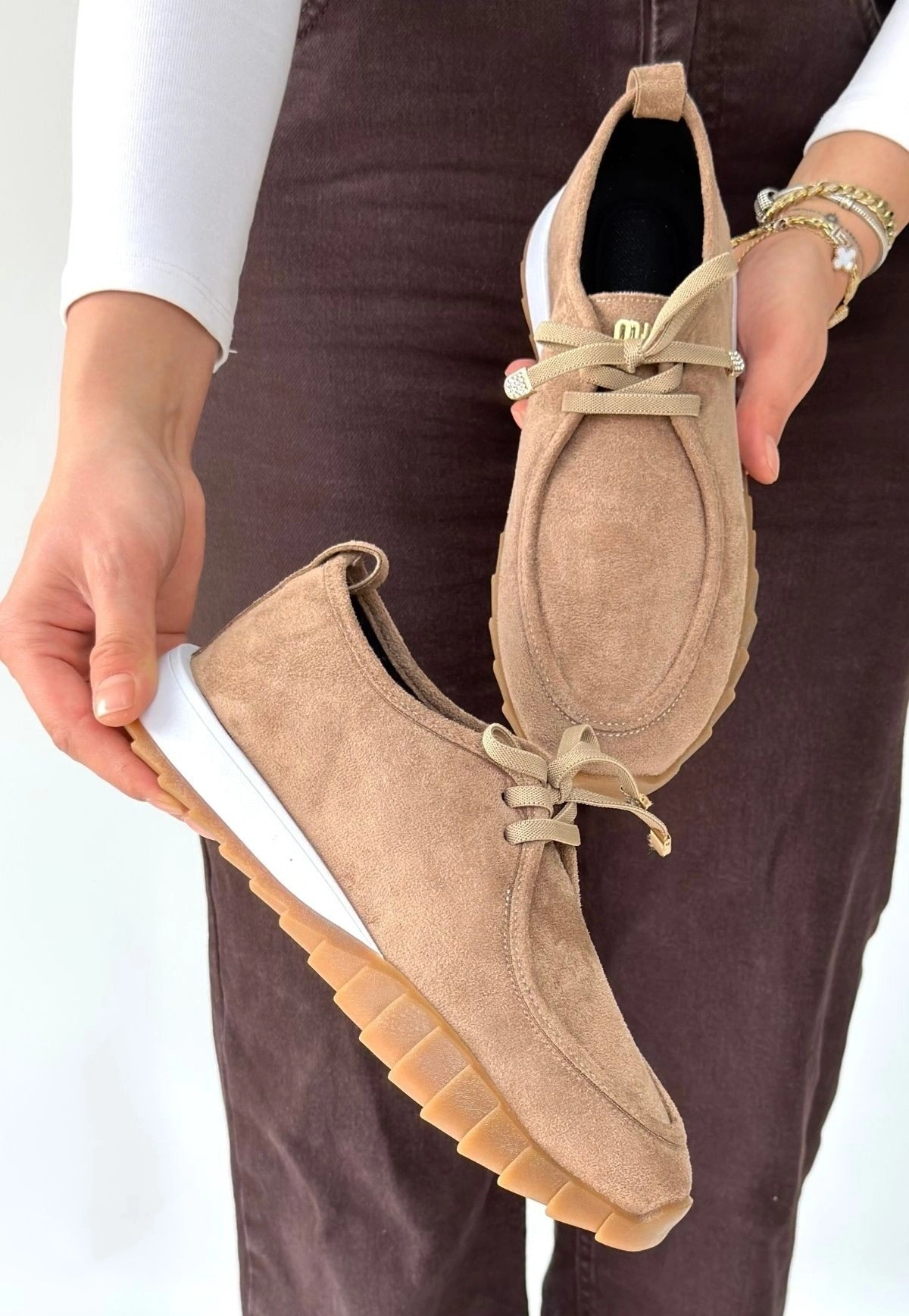Sier Bej Süet Bağcıklı Spor Ayakkabı