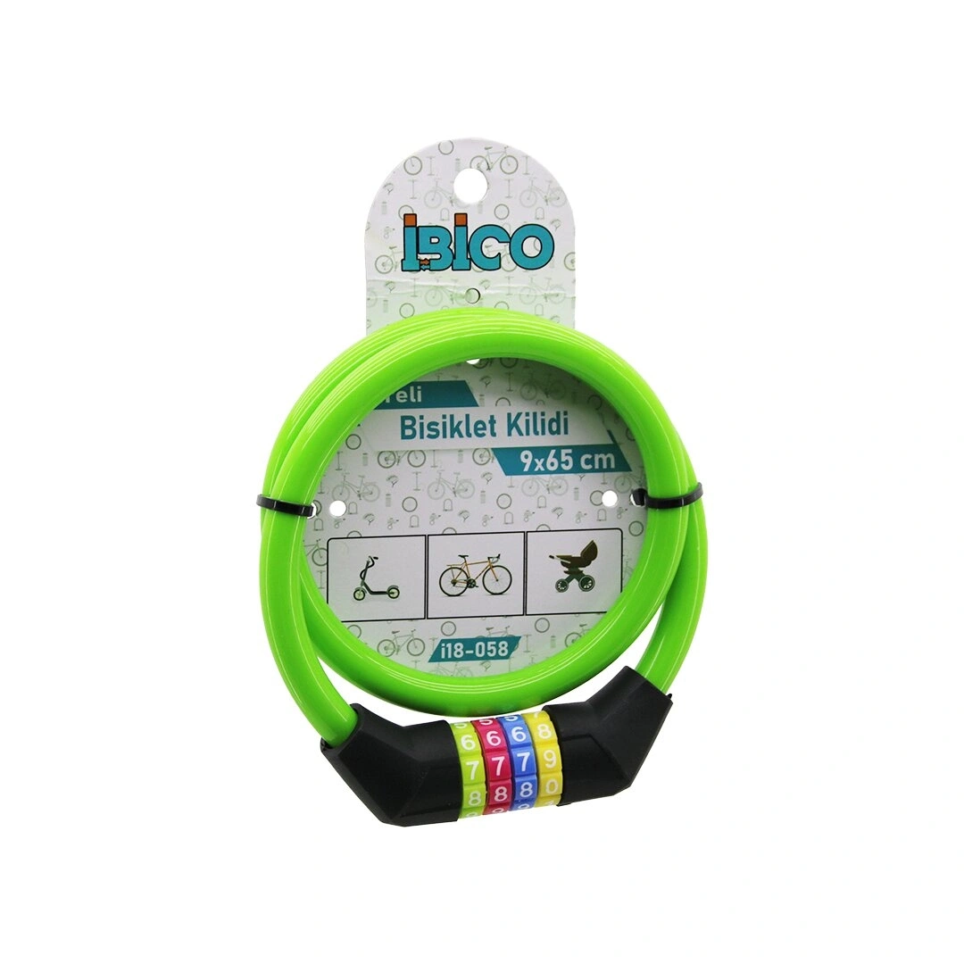 ŞİFRELİ İNCE BİSİKLET KİLİT ÇELİK TEL YEŞİL RENKLİ KILIF 9MMX65CM (4940)