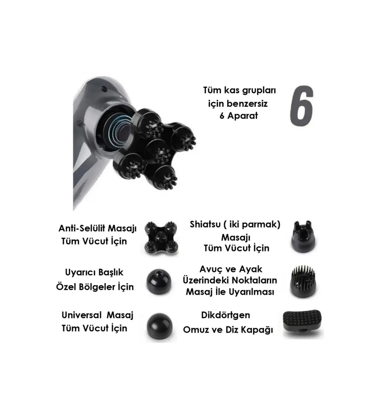 Sihirli Massager Plus JY-2024B Masaj Aleti Boyun Sırt Bacak Kol Karın Bel 6 Başlıklı