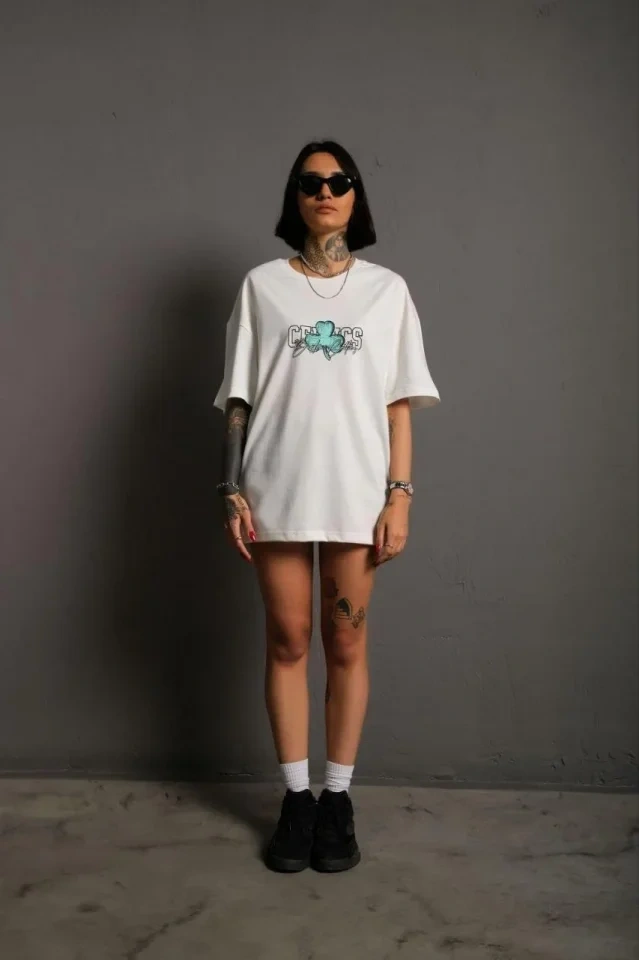 Sırt Baskılı T-shirt - Beyaz