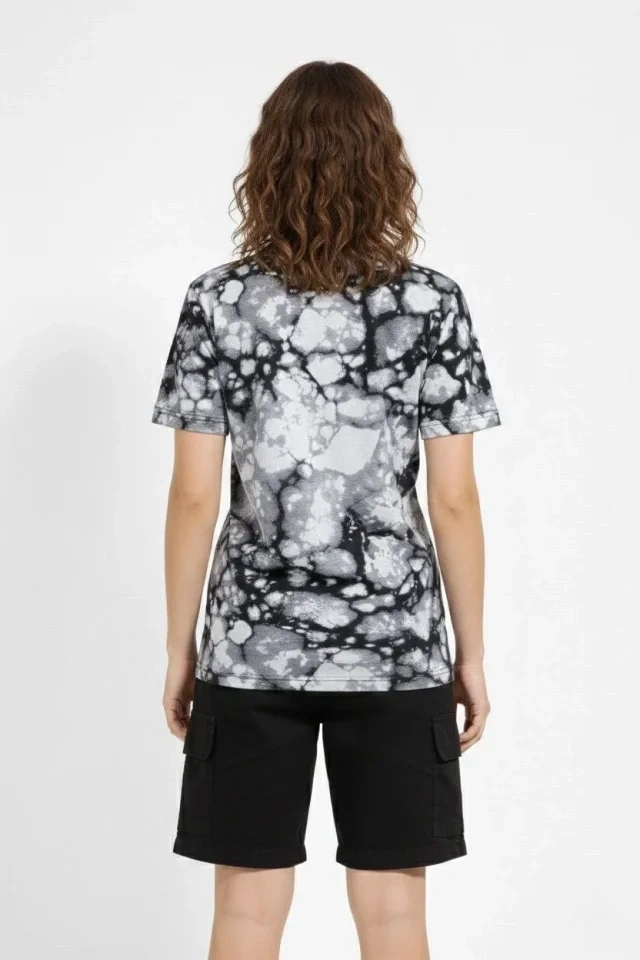 Siyah Gri Taş Desenli Tişört – Regular Kalıp, Bisiklet Yaka, Dijital Baskılı Modern Tasarım T-Shirt - Siyah