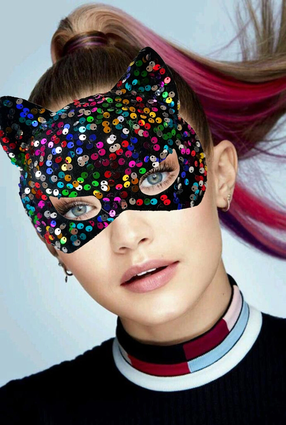 Şık ve göz alıcı bir parti maskesi mi arıyorsunuz? Siyah kadife kumaş üzerine işlenmiş rengarenk payetler ve pullar ile tasarlanmış parti maskemiz tam size göre! 16x14 cm boyutuyla yüzünüze tam oturan bu maske, partiler, balolar, özel günler ve kostüm partileri için idealdir. Yumuşak kadife kumaşı sayesinde maskeyi uzun süre rahatlıkla kullanabilirsiniz. Maskenin arkasındaki lastik bant sayesinde maskeyi kafanıza göre ayarlayabilirsiniz.