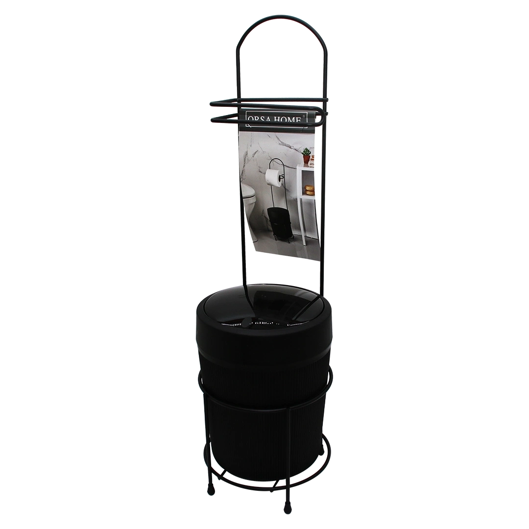 SİYAH METAL AYAKLI WC KAĞITLIK YUVARLAK PLASTİK KOVALI