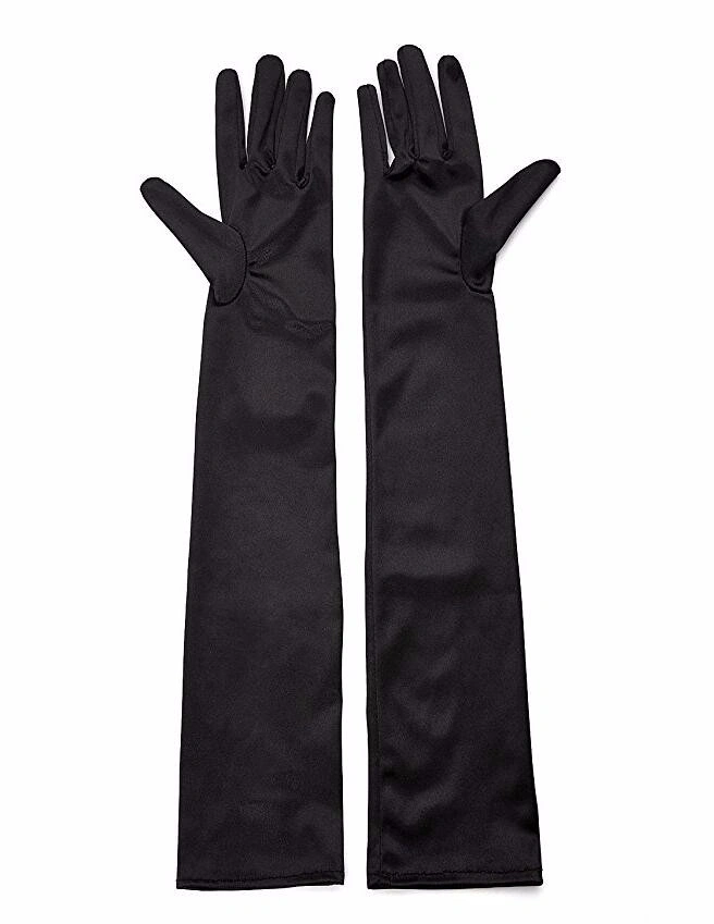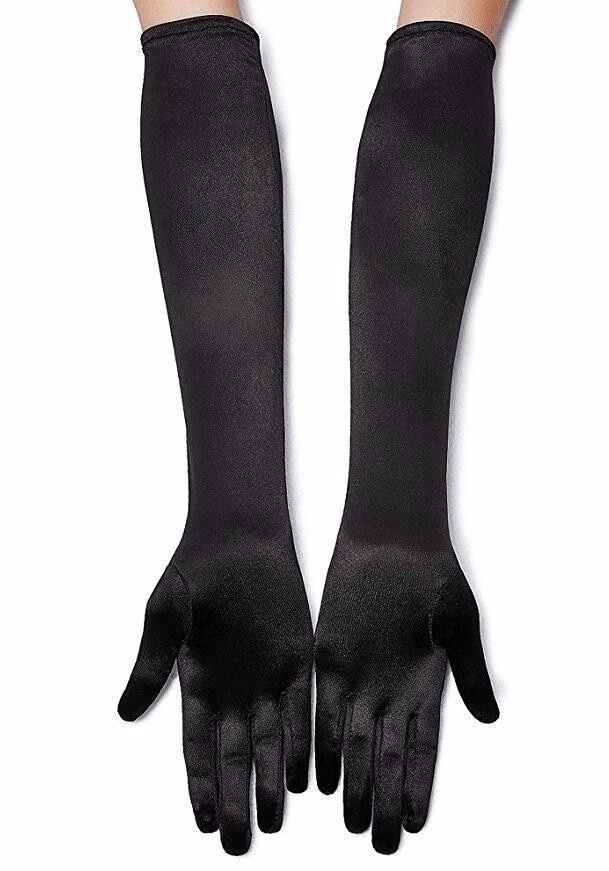 Siyah Renk Dirseğe Kadar Uzun Kumaş Eldiven (4940)