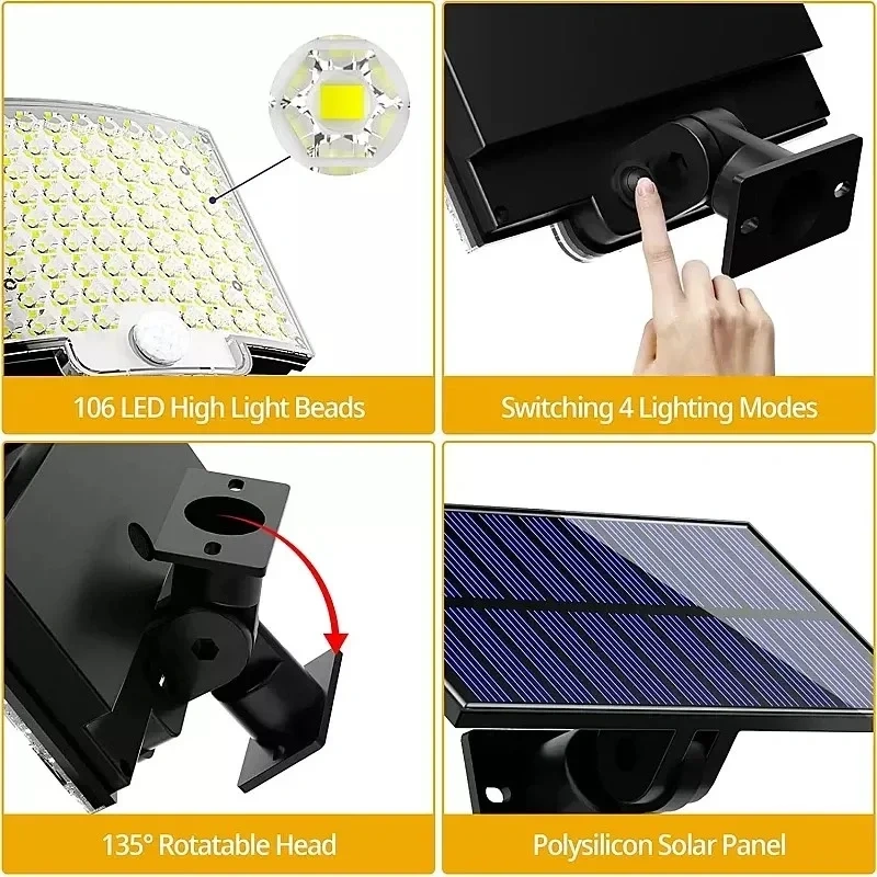 108 Led Güneş Enerjili Sensörlü Bağ Bahçe Solar Sokak Lambası Kolay Kullanım