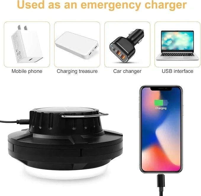 **Kullanım Alanları:** - Kamp ve doğa yürüyüşleri - Acil durumlar - Bahçe, garaj ve açık hava etkinlikleri - Elektrik kesintileri sırasında aydınlatma ve telefon şarjı
