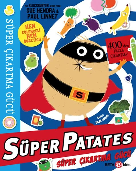 En sevdiğin pelerinli kahraman Süper Patates, yepyeni bir etkinlik kitabıyla sayılar, renkler ve zıt kavramları öğrenmen için göreve hazır! Süper Patates Süper Çıkartma Gücü’ndeki etkinlikler, 400'den fazla Süper Patates çıkartmasıyla dolu. Bulmacalar ve oyunlarla eğlenceli saatler seni bekliyor! Uzun yolculuklar, yağmurlu günler ve okul tatilleri için mükemmel bir hediye!