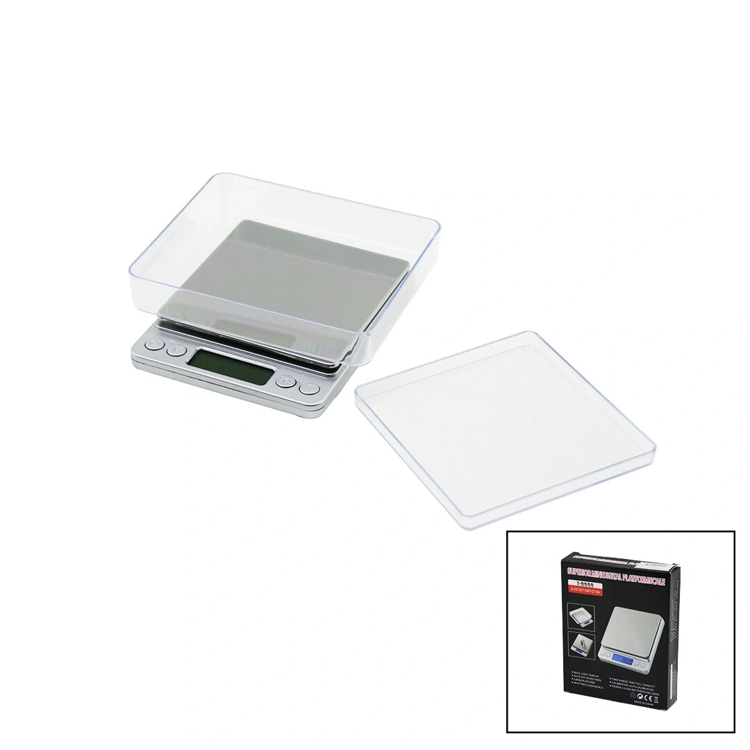 3000GR/0.01GR MİNİ=10.5X13CM HASSAS TARTI - TERAZİ ŞEFFAF PLS.KAPAKLI - PİLLİ= 2PCS İNCE (4940)