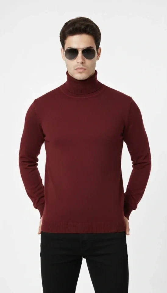 Tam Boğazlı Balıkcı Yaka Triko Kazak Yumuşak Dokulu Pamuklu Ince Dokuma, Uzun Kollu Rahat Regular Kalıp - Bordo