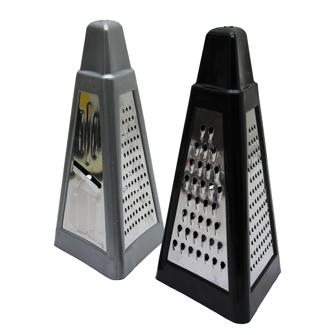 PİRAMİT METAL MUTFAK RENDESİ ÇİFT YÖNLÜ RENKLİ PLASTİK ÜSTTEN TUTMALI (4940)