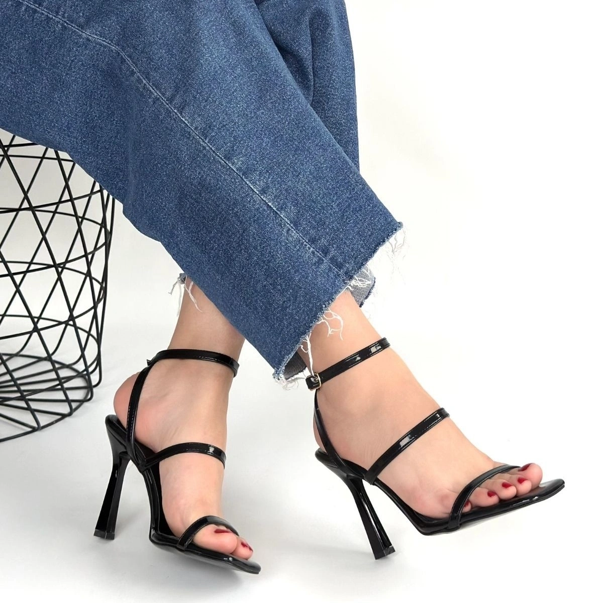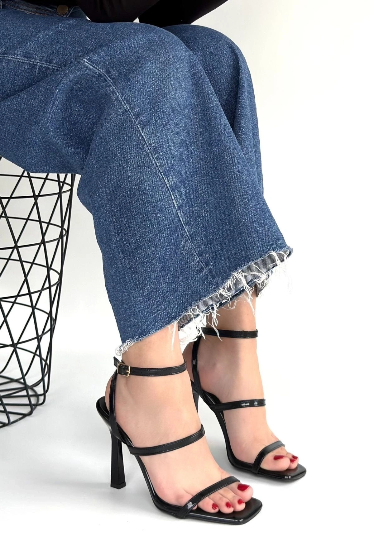 Umira Siyah Rugan Topuklu Bilekten Kemerli Ayakkabı