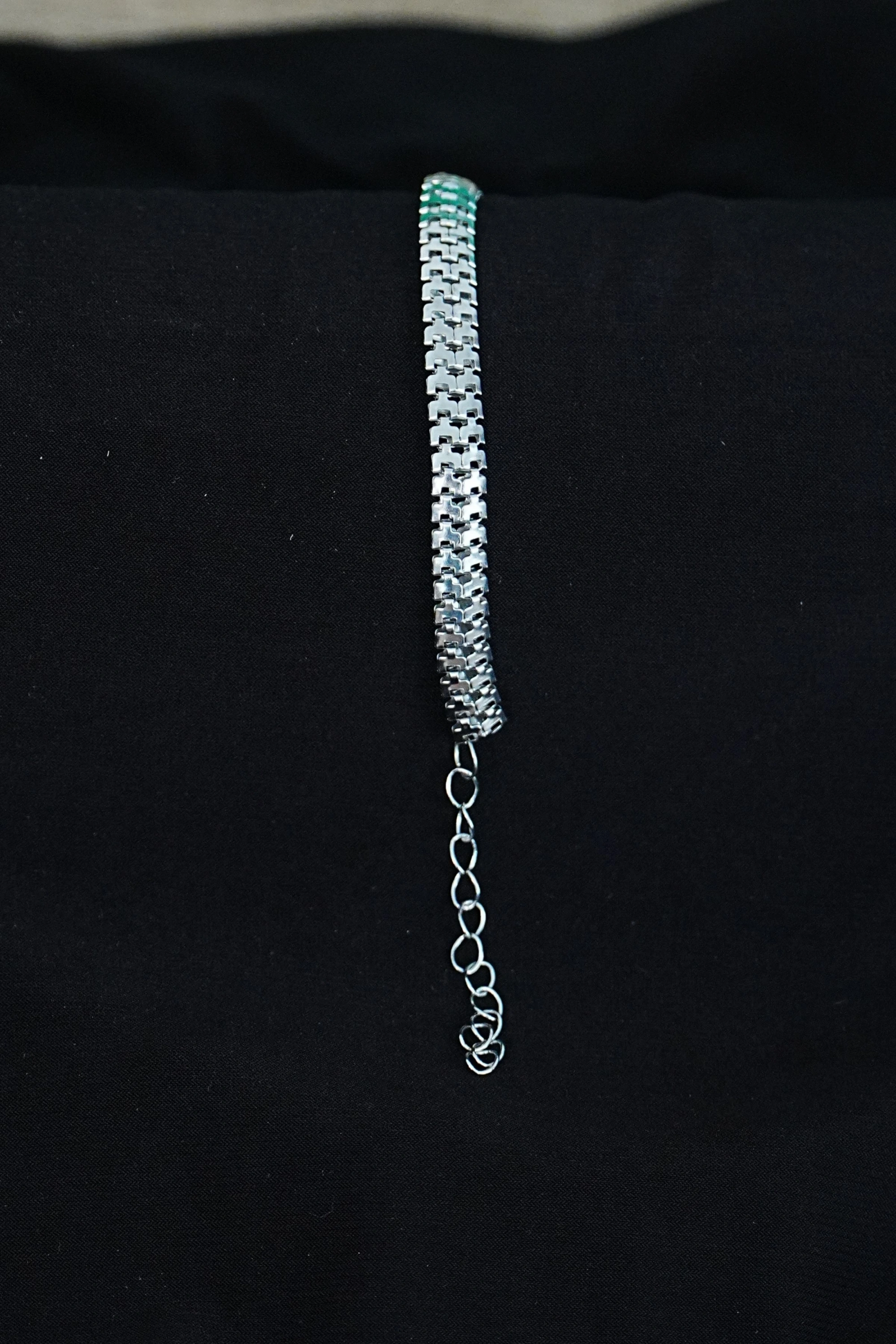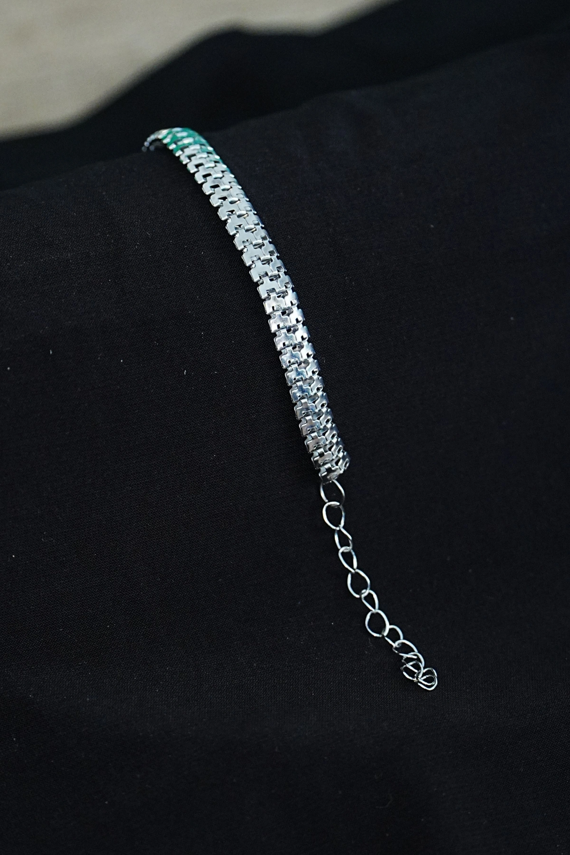Modern ve zarif tasarımıyla öne çıkan unisex gümüş kaplama yassı tırtıl zincir künye bileklik, hem erkekler hem kadınlar için mükemmel bir aksesuar. Özel geçmeli tasarımıyla kullanımı kolay ve konforludur.