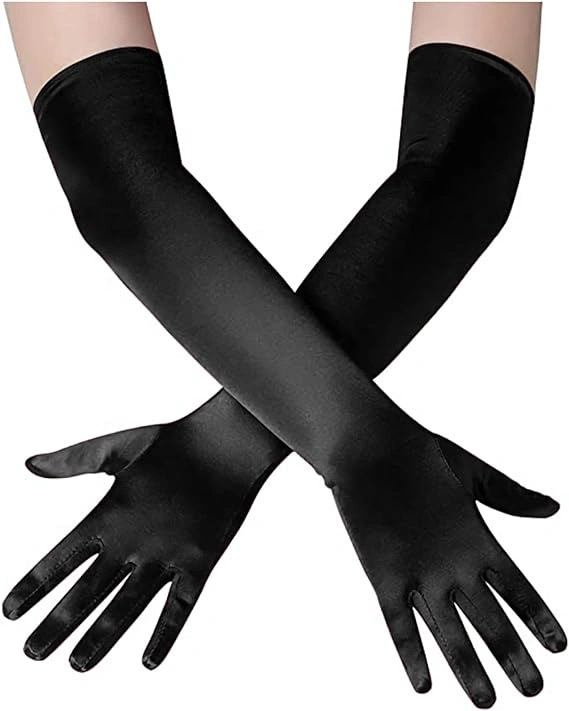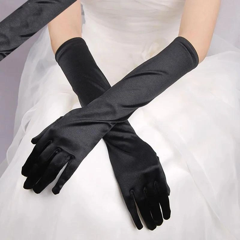 Uzun Boy Ekstra Parlak Saten Eldiven Siyah Renk