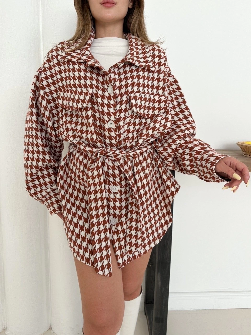 Uzun kaşe gömlek beyazkremit ST255812, şıklığı ve rahatlığı bir arada sunar.