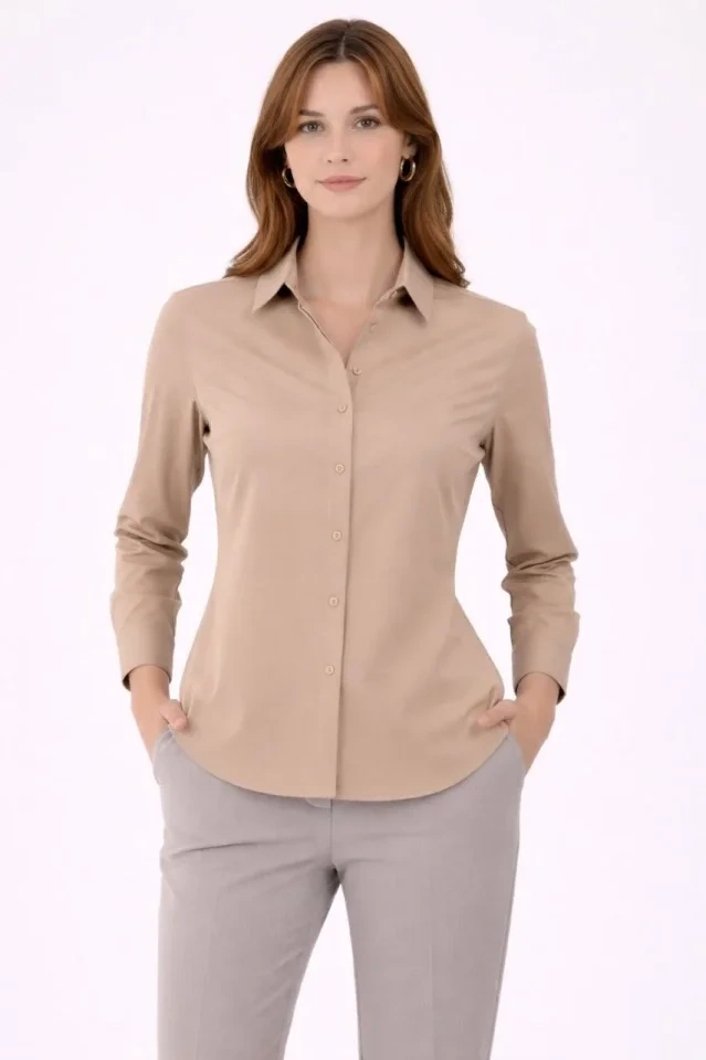 Uzun Kollu Gömlek Düğmeli Klasik Yaka Günlük Ve Ofis Şıklığına Uygun - Bej