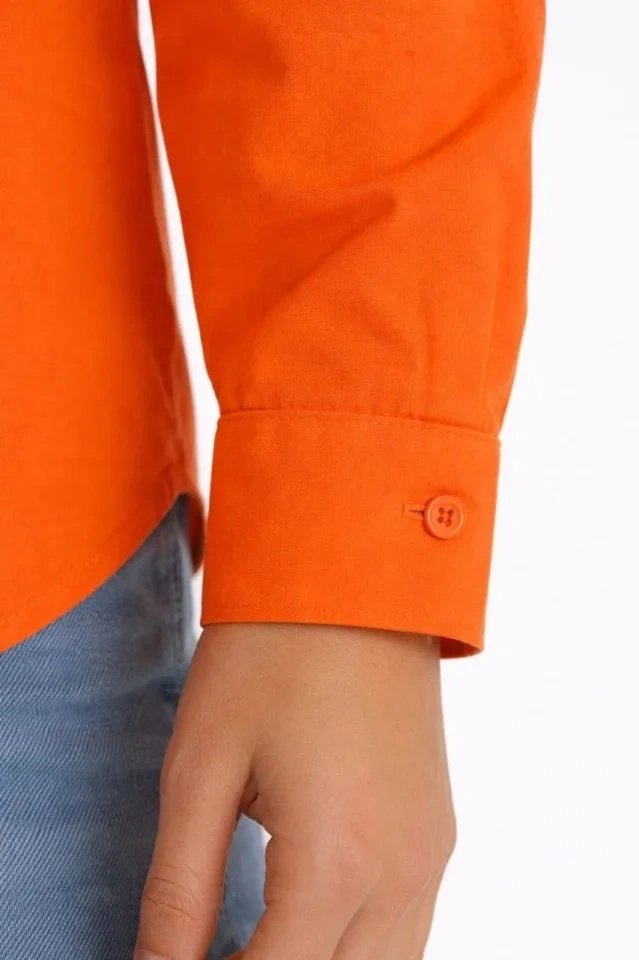 Uzun Kollu Gömlek Düğmeli Klasik Yaka Günlük Ve Ofis Şıklığına Uygun - Turuncu