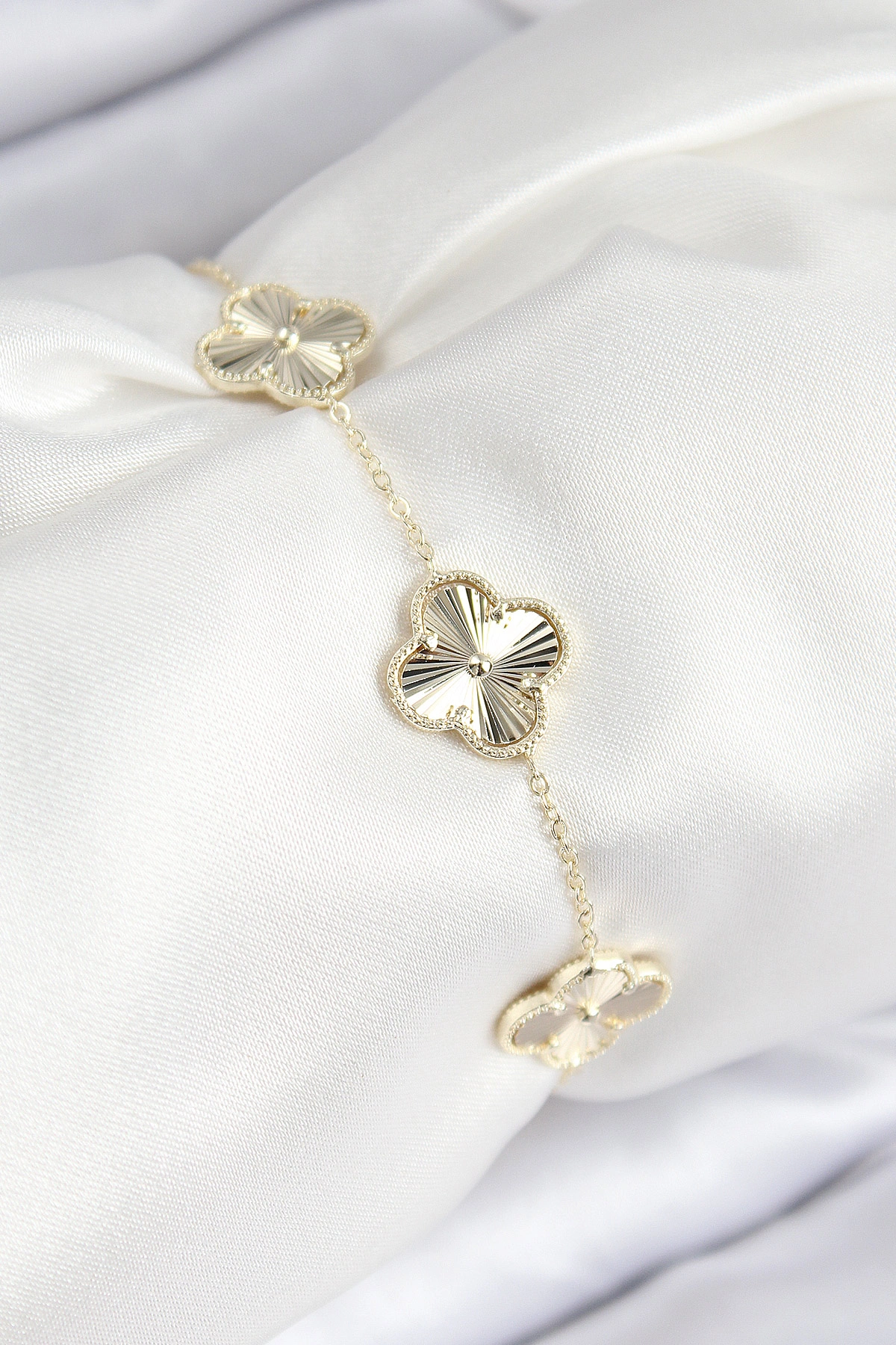 VIP Pirinç Yonca Model Gold Renk Kadın Bileklik