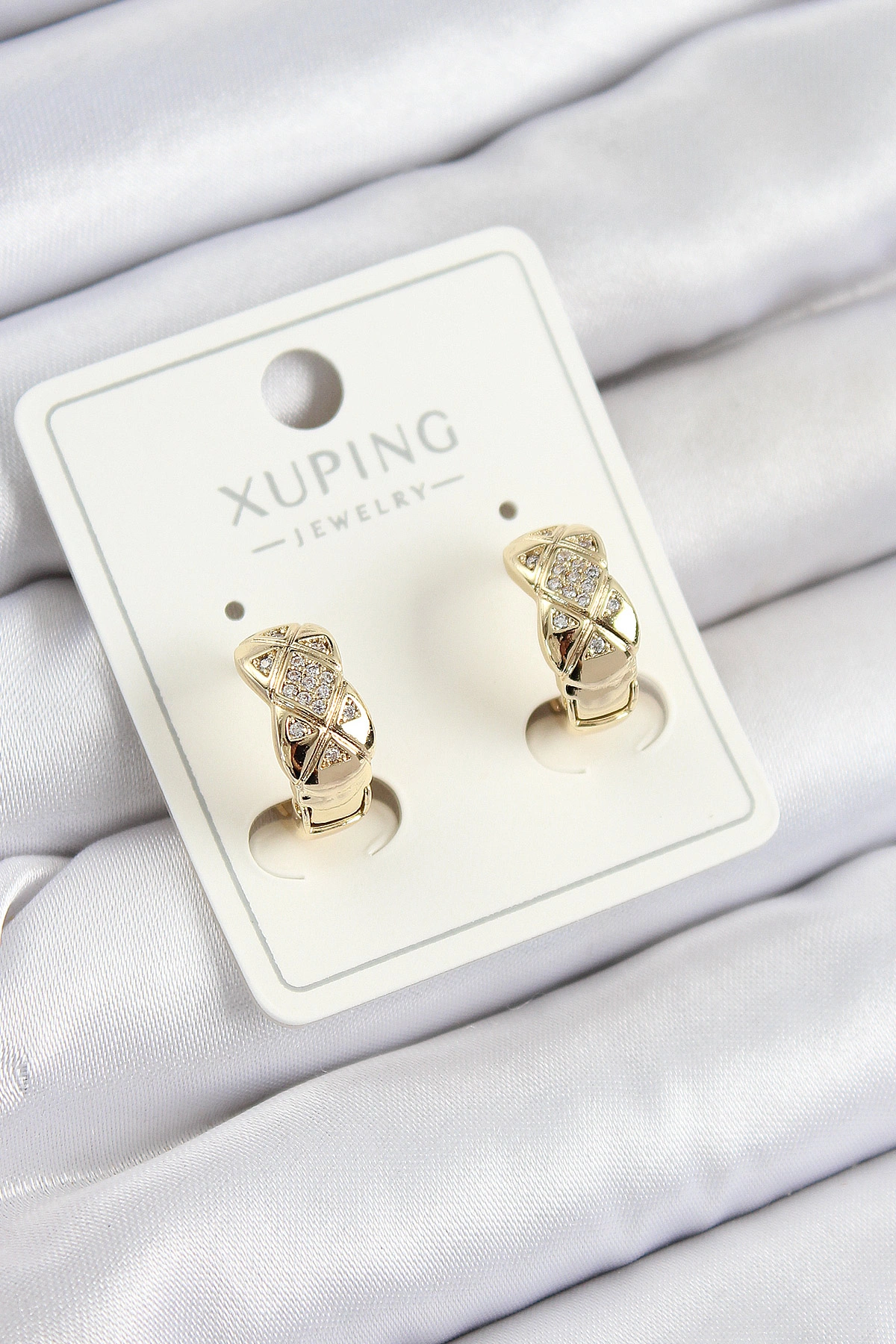 Xuping Zirkon Taşlı Geometrik Desenli Halka Model Gold Renk Kadın Küpe