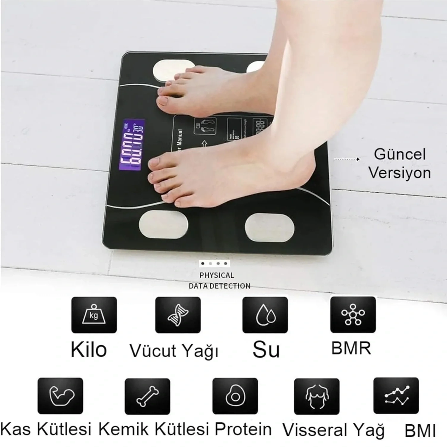 Dijital Baskül Yağ Ölçer Fonksiyonlu Akıllı Baskül Bluetooth Tartı- SiyahDijital Bluetooth Baskül - Yağ Su Kas Vücut Kitle Endeksi Kilo Ölçer Tartı Vücut Analiz Cihazı Siyah