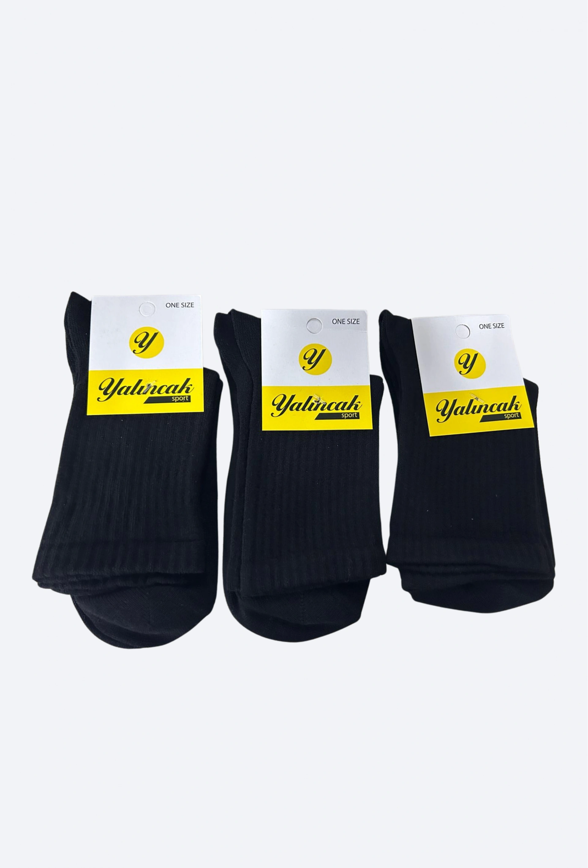 Yalıncak Yarım Konç Kolej Çorap Siyah Renk 3 Adet Desensiz Model